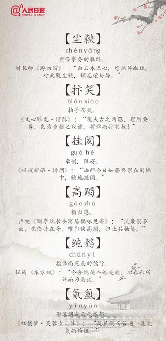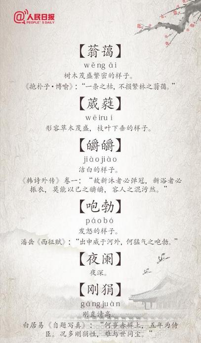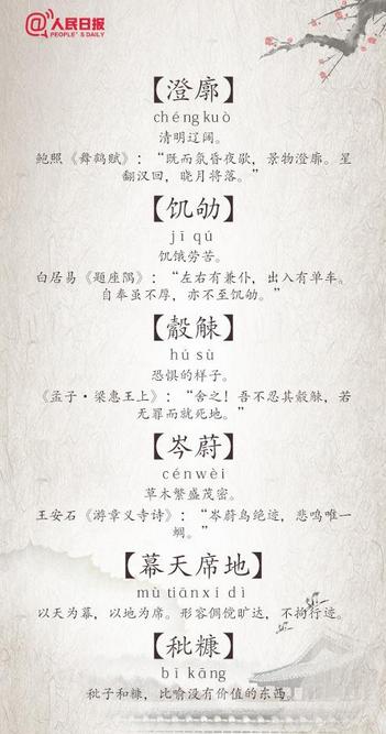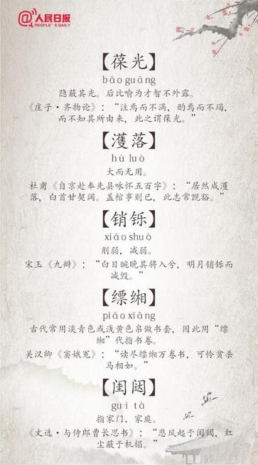 ①婵媛,形容姿态美好;②栖迟,表漂泊失意;③澄廓,意为清明辽阔……这些古汉语词汇,今天虽不常见,但读起来韵味无穷,有种古朴的美感。遣词造句中用上一两个,气质好像都瞬间提升了!50个唯美典雅的古语词汇↓↓你认识几个?