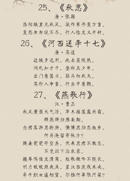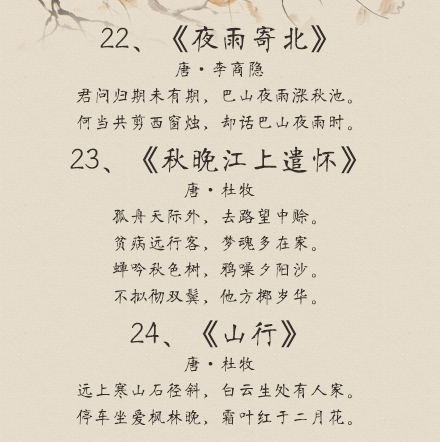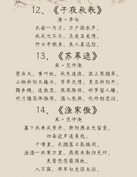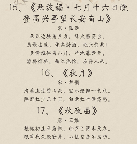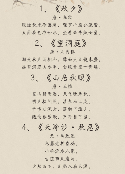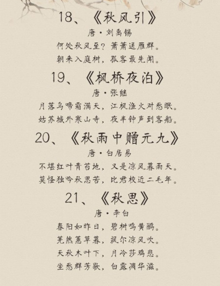 少儿书刊秋天,是丰收的季节,也是文人咏诗颂词的时节。“空山新雨后”的沁人心脾,“江清月近人”般的静谧祥和,“轻罗小扇扑流萤”般的轻松,“无边落木萧萧下”的凄凉肃杀,“秋花惨淡秋草黄”的悲凉……秋天在文人笔下各有特色。读读下面这些诗词,感受秋风古韵吧!