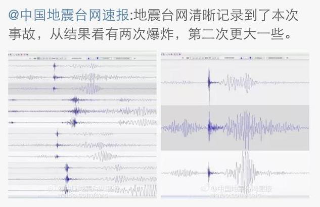 从波形记录结果看,第一次爆炸发生在8月12日23时34分6秒,近震震级ML约2.3级,相当于3吨TNT,第二次爆炸在30秒后,近震震级ML约2.9级,相当于21吨TNT。