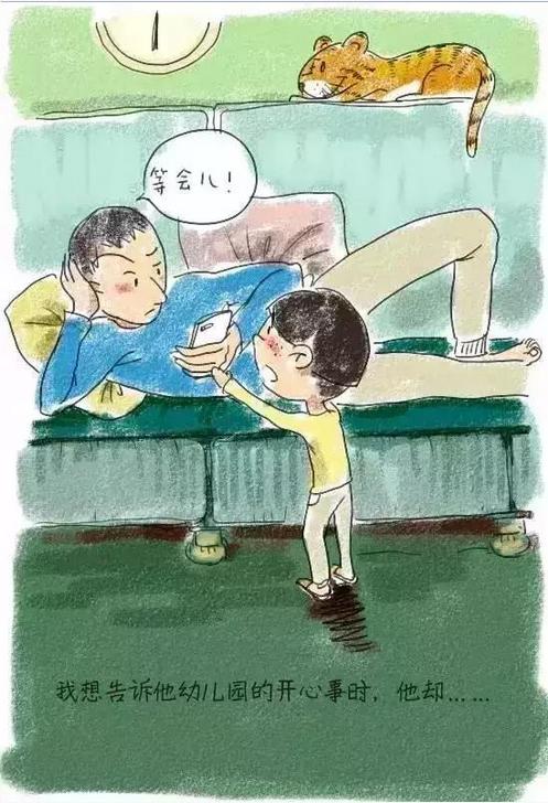 父母低头看手机,对孩子直接造成的伤害就是孩子感觉自己被冷落了,其次,孩子开始效仿父母的做法,也开始热衷低头看手机。最后的结果就是,父母反过来又为孩子热衷看手机而苦恼不已。却不知正是自己不经意的动作酿下的“苦果”。