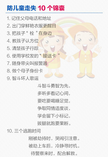 少儿期刊每个家长都该看!孩子防拐骗指南!每一个孩子的失踪,都伴随一个家庭的悲剧。统计显示,每年失踪的儿童中,被拐骗贩卖的比例占8成,那么,儿童容易在哪里走失?常见骗术有哪些?如何防止儿童被拐?......戳图!学习儿童防拐骗指南。