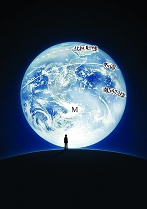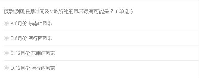 “用户登录微信时所见的地球影像图”,从图中赤道附近云系的分布位置及M地所处的纬度位置推测,该影像图拍摄时间及M地所处的风带最有可能是?