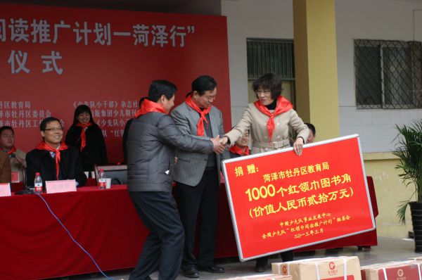 2013年3月26日,红领巾阅读推广计划——菏泽行启动仪式在菏泽牡丹区东关小学举行。《少先队小干部》杂志社常务副社长赵继新、青岛出版集团少儿期刊中心总编辑李茗茗、山东省菏泽市教育局党委成员、正县级督学戴文潮、共青团菏泽市委副书记王新国、菏泽市牡丹区教育局副局长季广伟、红领巾阅读推广计划菏泽联络处负责同志等相关领导、菏泽牡丹区各小学负责校长以及部分师生代表参加了启动仪式。