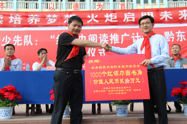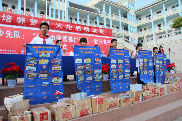 2013年4月18日,“红领巾阅读推广计划—黔东南州行”启动仪式在凯里市第八小学隆重举行。“红领巾阅读推广计划”组委会副主任刘中苏,《少先队小干部》杂志社主编叶子健,青岛出版集团少儿期刊中心副总编辑、“红领巾阅读推广计划”组委会办公室副主任黄东明,“红领巾阅读推广计划”组委会办公室副主任、青岛智趣源文化传媒有限公司总经理张洪胜、“红领巾阅读推广计划”贵州省联络站(筹)负责人张洪,以及共青团黔东南州委书记罗祖新、黔东南州民族高级中学校长、党委书记杨小平等领导参加了启动仪式。