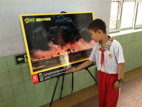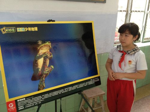 启动仪式结束后,小编们还参观了设在学校里的《环球少年地理》图片展,图片虽然是由《环球少年地理》编辑部提供的,但是在参观的过程中,小编们非常感动,因为每幅图旁边都站着一位同学,他们负责为参观的人们详细讲解图片的内容。同学们富有激情的讲解深深地吸引着小编们,同学们将自己对图片的理解和想象加入到了图片讲解中,使图片生动十足。